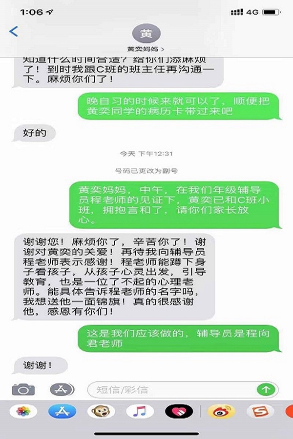 这是学生家长给班主任的短信,也是对程向君老师工作的认可。