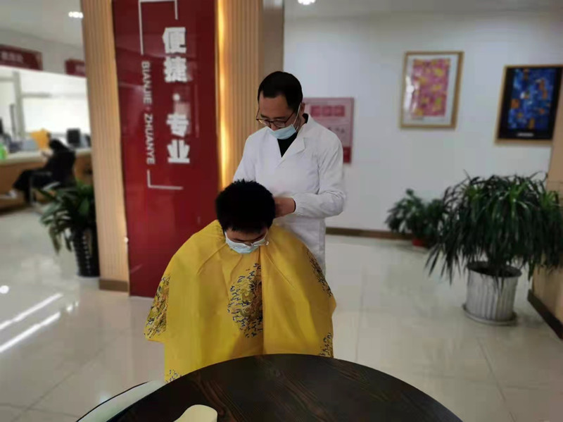 活动一经发出,即有一百余名同学报名。理发现场严格按照疫情防控要求,所有人员需佩戴口罩,保持安全距离,体温监测、消毒处理每一个环节都不能少。推剪、打薄、修边……活动现场,“理发师们”耐心询问“小客人”对发型的要求后,便认真娴熟地修剪起头发来。伴随着剪刀、电动理发器的咔嚓声、嗡鸣声以及“理发师”与学生们和乐融融的谈笑声,学生们原本凌乱的头发变得干净利落,面容也精神了许多。