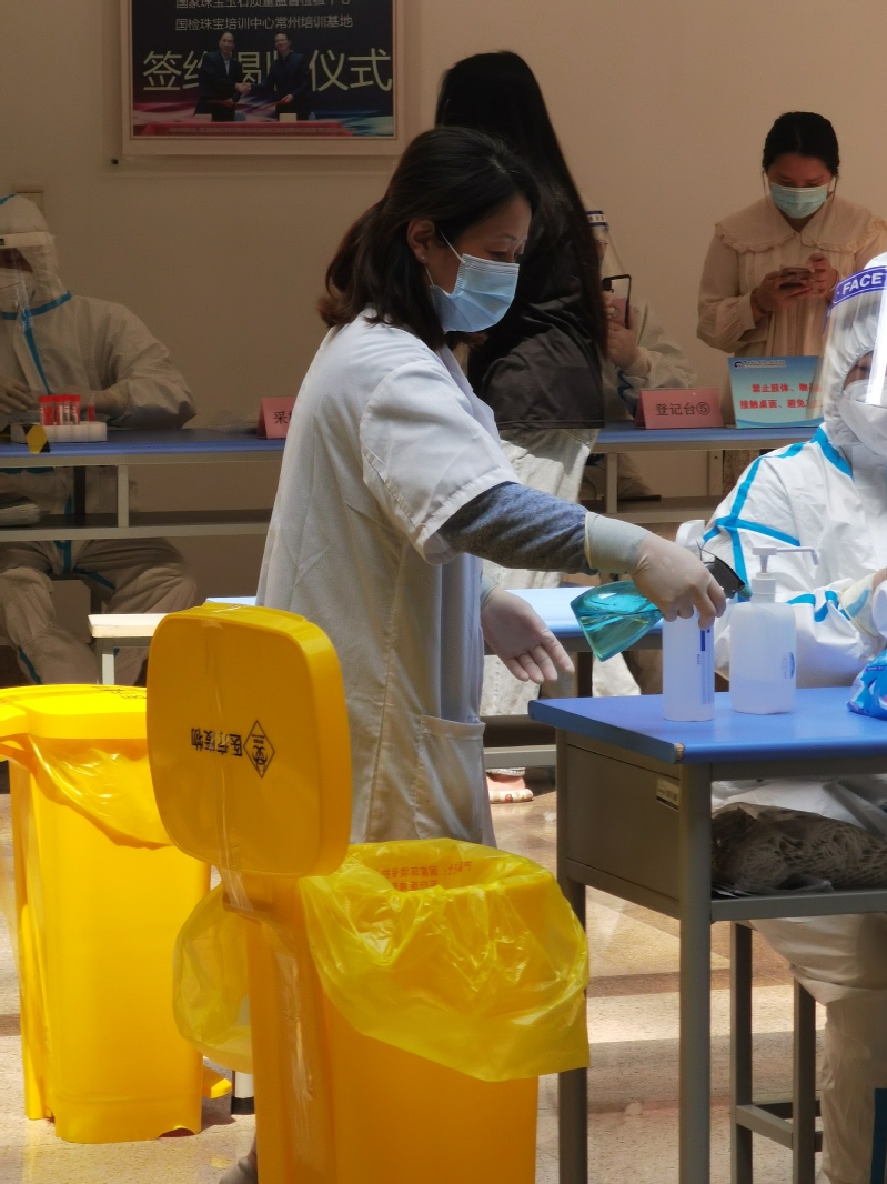 目之所及是生命,心之所向是使命,此次疫情开始后,学校开始封闭管理,为了筑牢疫情防线,守护师生健康,她又连续住校至今已有30多天,带领仅有的几名医务人员同心战“疫”,一会化身大白和小蓝,飞奔在隔离区、全员核酸现场、常态化核酸现场、抗原检测留观区;一会儿又化身搬运工,带上手套、推起小车赶到校门口去搬运防疫物资、接收快递;一会儿又身披白衣坐门诊、值夜班、顶药房,什么时候都是面带笑容、迈着有力的步伐边走边跑,哪里需要就到哪里……