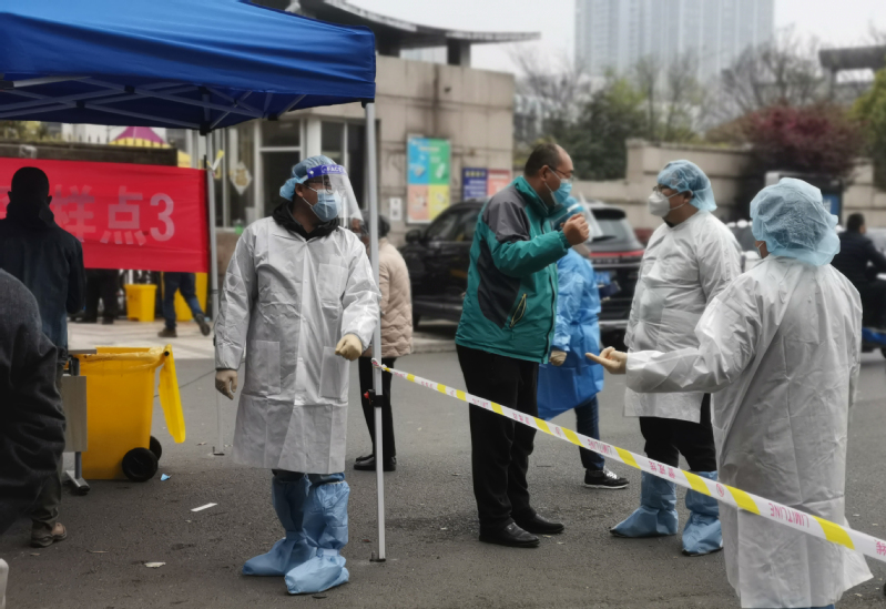 在全员核酸检测的日子里,参加了连续多日的核酸检测工作,每天凌晨四点半起床,五点钟社区报到,领取防疫物资。工作是负责查看健康码、测量体温、扫楼、维持现场秩序并指导社区人员出示核酸采样码。