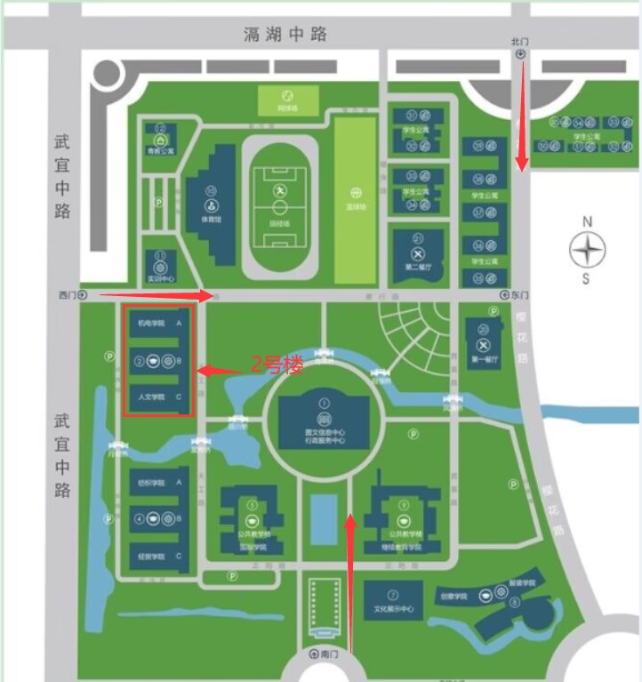 (1)报到点设置在考点2号楼1楼大厅(见附件3)。
