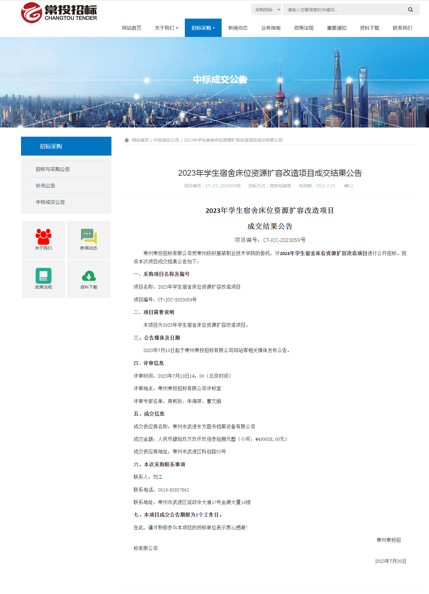【成交公告】2023年学生宿舍床位资源扩容改造项目成交结果公告