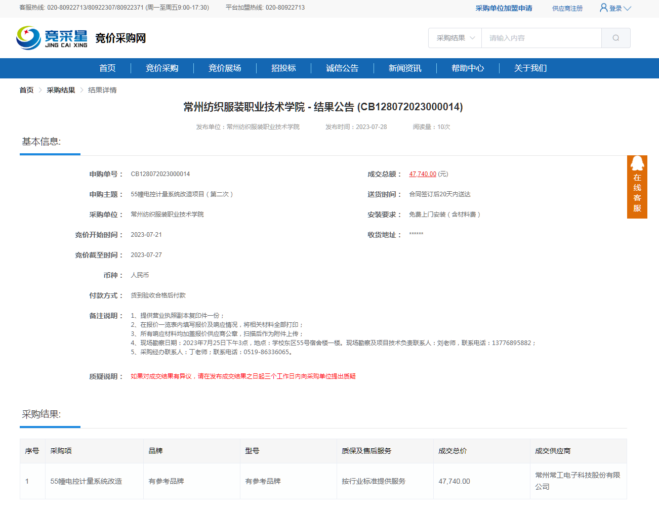 【成交公告】55幢电控计量系统改造项目成交公告
