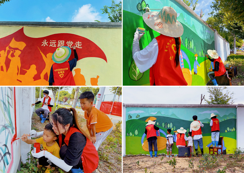 绿色展雄心。创意学院服务乡村振兴国家战略的雄心,始终不渝,先后获批校级重点支持科研团队,师生设计乡村振兴主题作品在省优秀毕业设计、全国数字艺术设计大赛中获奖6项。将艺术元素运用到乡村规划建设,加强乡村建设中的审美韵味,使得乡村的自然景观、人文景观、农业景观、风貌景观形成有机整体,联合武进供销社、雪堰镇政府,从农副产品的包装入手,助力乡村振兴,乡村振兴主题展厅集中展示了空间设计和包装设计作品,充分展示了师生对不断提升人居环境品质,建设更高品质、更深内涵的美丽乡村的思考。“青绘寻梦心向党——墙绘·茅山新画卷”志愿服务队暑期社会实践团围绕“党建引领,乡村振兴”主题,深入了解并调研常州市金坛区薛埠镇石马村发展历程和地域文化特色。团队成员以最具代表性的茶文化为切入点,结合“丰收的农作物”等元素,历时一周,设计出色彩艳丽,风格独特的墙绘作品,将艺术带进乡村,为乡村振兴擦出本有的自然底色,开出了美育的花。