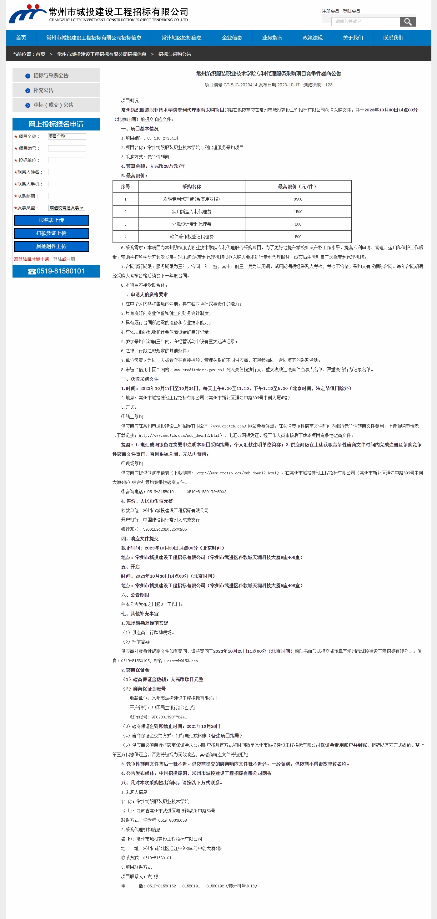 【采购公告】专利代理服务采购项目竞争性磋商公告
