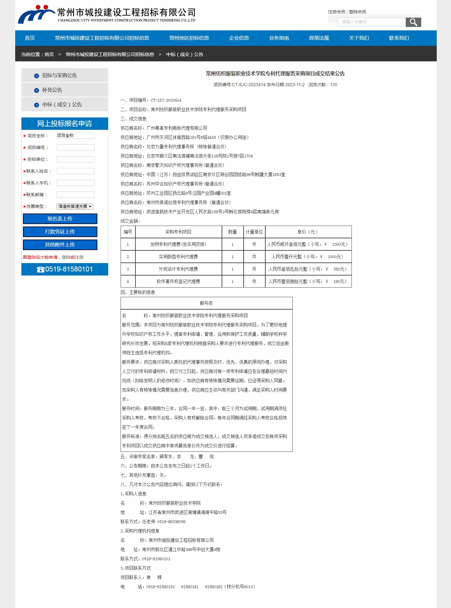 【成交公告】专利代理服务采购项目成交结果公告