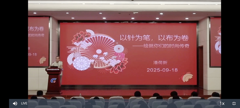 特邀校关工委委员、学院党总支原书记潘荷新与新生话成长,他以学校的发展历程为引,带领新生们穿越时光,生动再现了学校自1958年从常州纺织工业专科学校的初创,到全国重点中专,再到2001年升格为高职院校以及到成为省双高计划建设单位以来筚路蓝缕的创业历程、砥砺前行的发展足迹和硕果累累的辉煌成就。他深情地讲述着学校在曲折中前行,在改革中腾飞的故事,让新生进一步增强了对学校的归属感、认同感和自豪感。学院特邀江苏圣澜服饰创意有限公司董事长、“同桌的你”品牌创始人王秋芬女士开展分享会。她结合自身创业经历,深入分析行业趋势与发展机遇,鼓励新生培养创新思维和市场意识,为未来职业发展与自主创业积累经验。