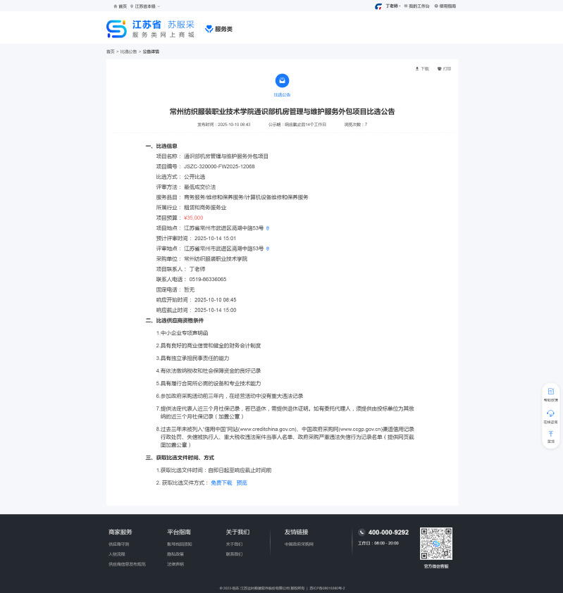 【比选公告】通识部机房管理与维护服务外包项目比选公告